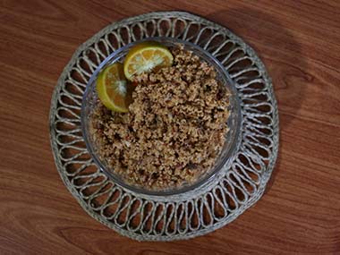 - Take out from the blender and put the mixture into a bowl and add the coconut, salt and lime juice and mix well by hand until the coconut is well coated with the mixture